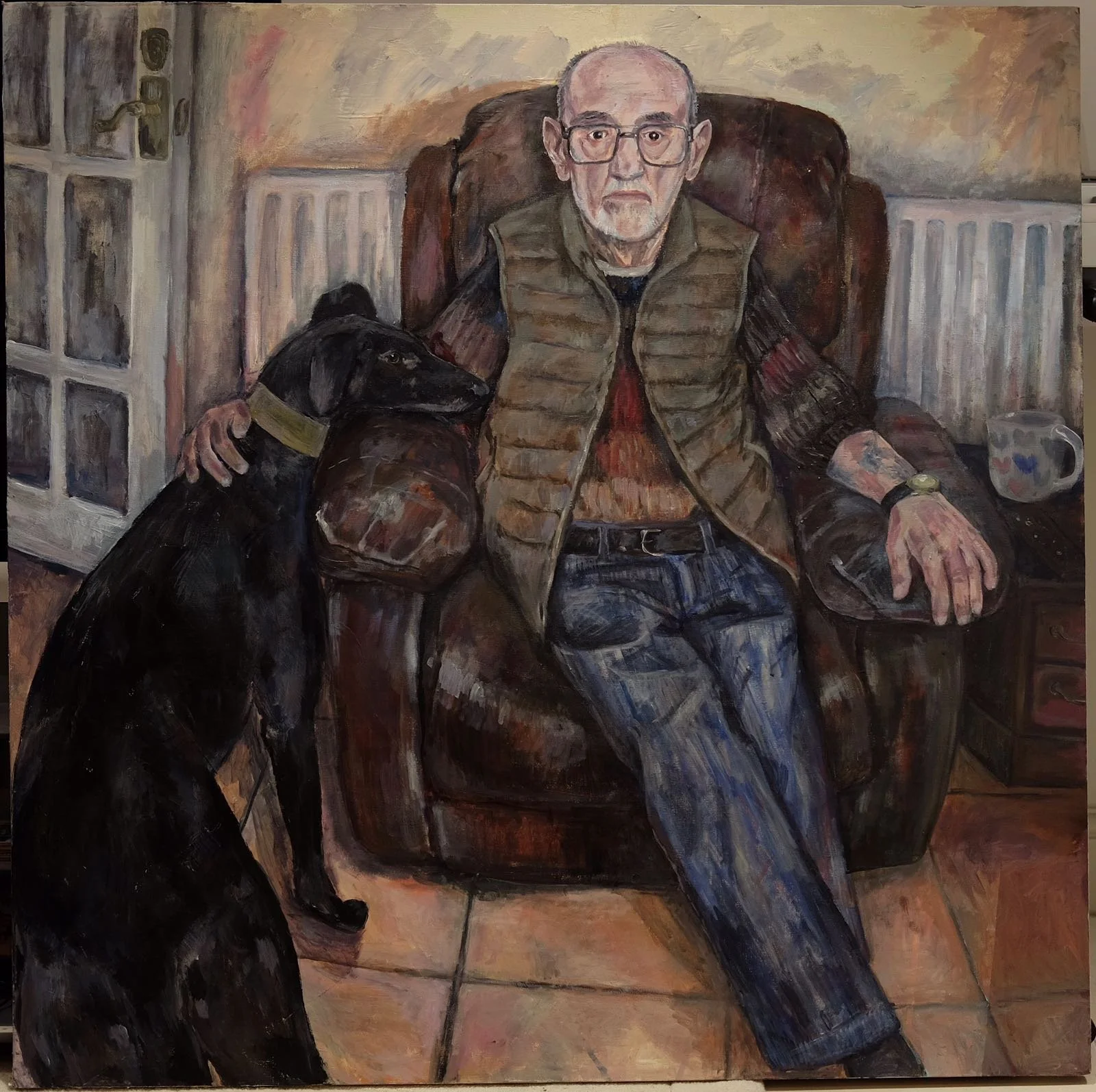 When he was diagnosed with prostate cancer, I asked if I could paint him. He agreed, on one condition: that I include his beloved rescue dog, Beaky. He loved dogs more than anything.